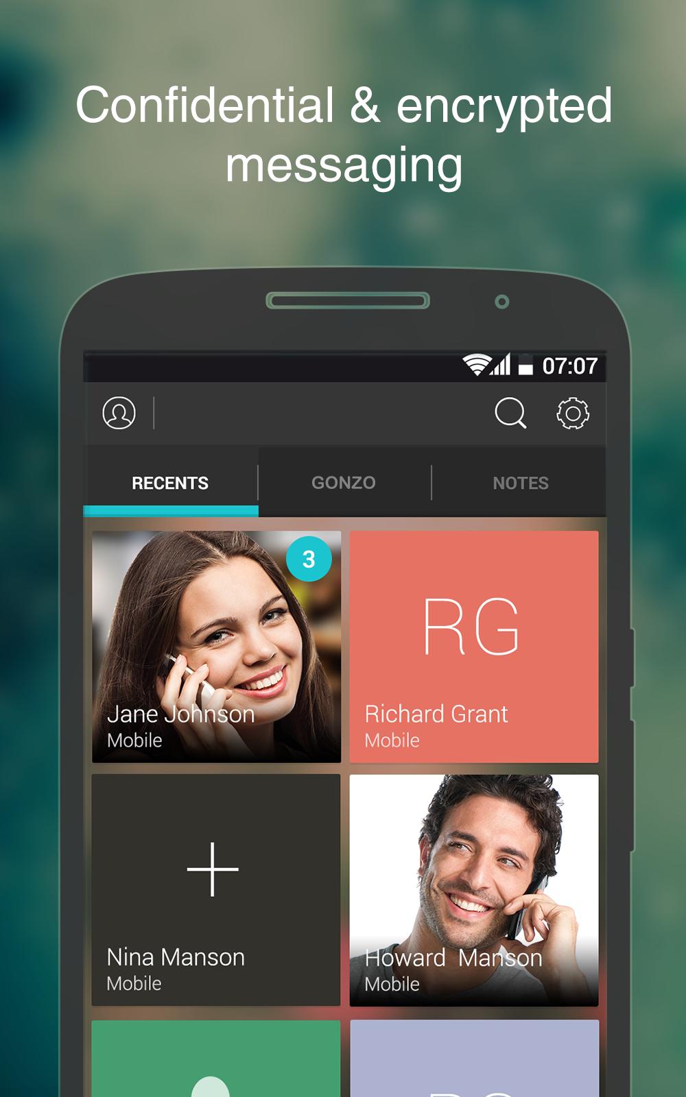 Gonzo solves the growing concerns about privacy and data collection. Whoever you are chatting with your conversation is heavily encrypted so no one can intercept it. All messages self-destruct after they are read with no trace left on our servers.