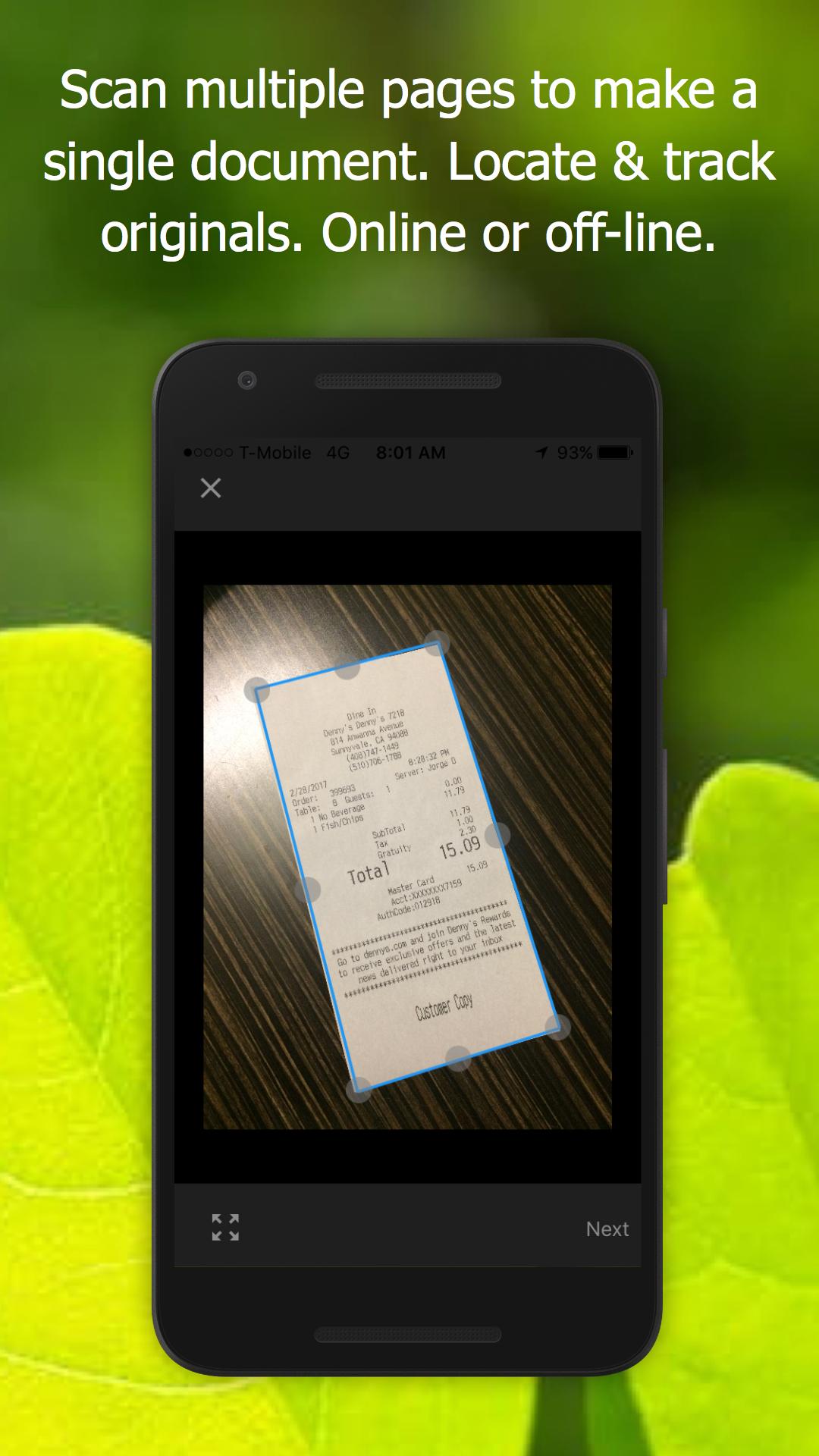 1. Scan: digitize paper documents effortlessly. With your mobile camera you can make single and multipage pdf document.