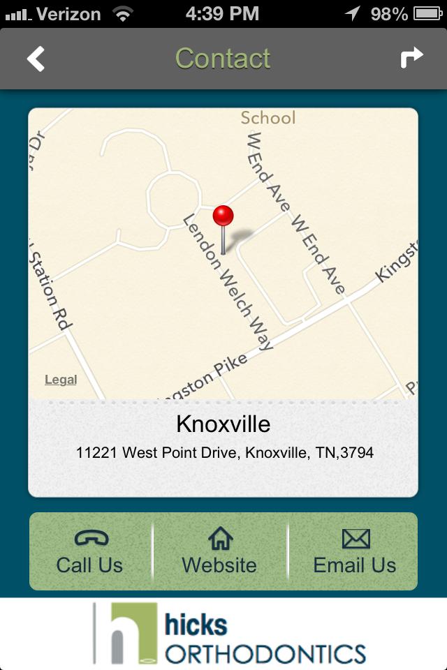 This free, innovative, and educational App is provided by Hicks Orthodontics. It serves all existing and new patients, as well as future patients to easily contact the office of Dr. Hicks, request an appointment, and submit an emergency request (including a picture, if area is appropriate). You are able to submit reviews and testimonials, view the gallery with office tour photos, bio, and pictures of the Doctor and his wonderful staff, one-touch calling, GPS directions right to the office, and submit a survey. The office always wants to know how your appointment went and to hear from you. You can also refer a patient to Hicks Orthodontics' office! We believe you will find this App very informative and helpful in providing the best service and communications to our valued clients.