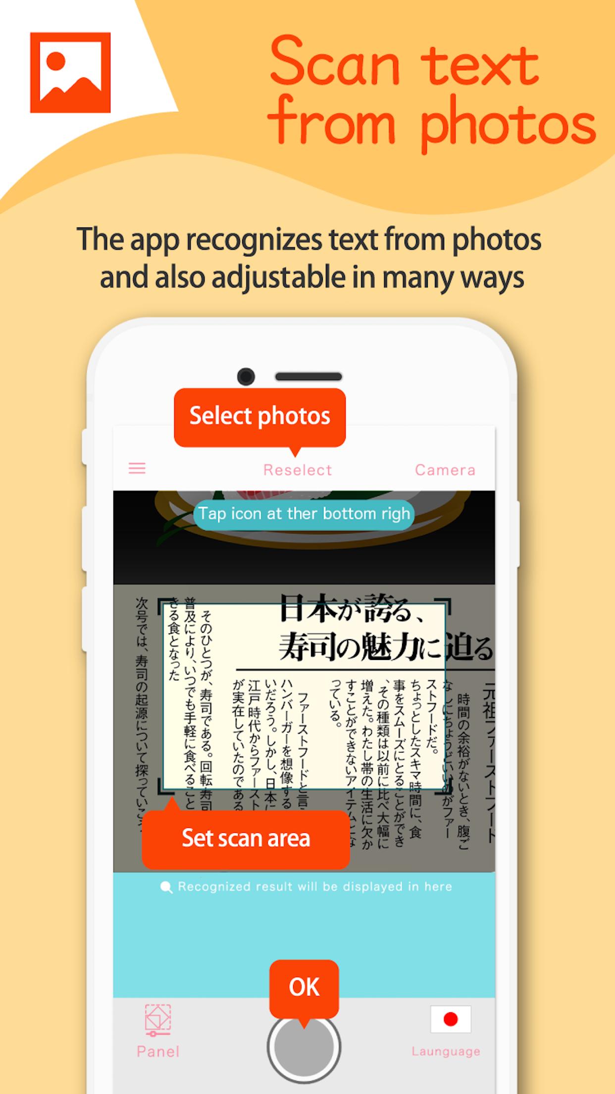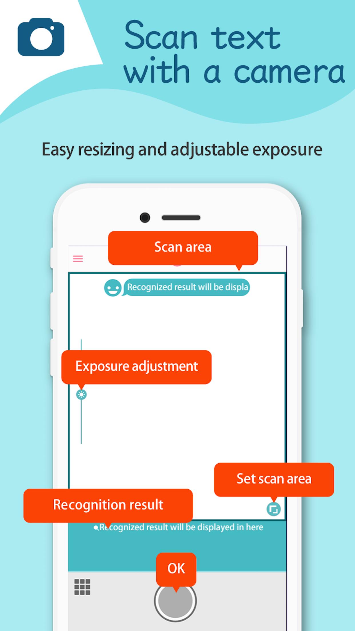 FREE app!Easily scan text with camera,then copy and share anywhere.