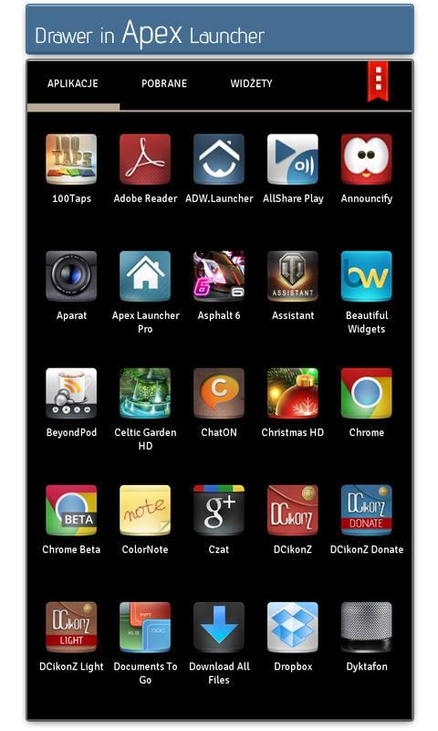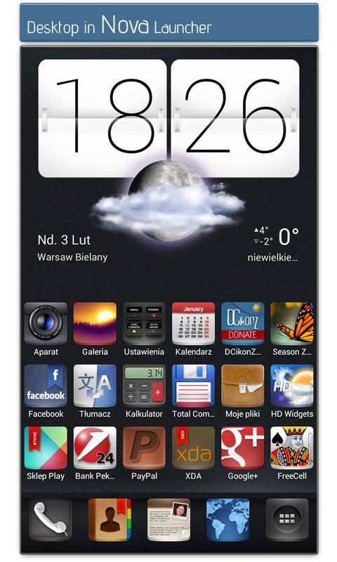 - Works with Nova, Apex, Go, Holo, Atom, SmartLauncher, Espier4 and ADW Launcher. For TSF is separately app.