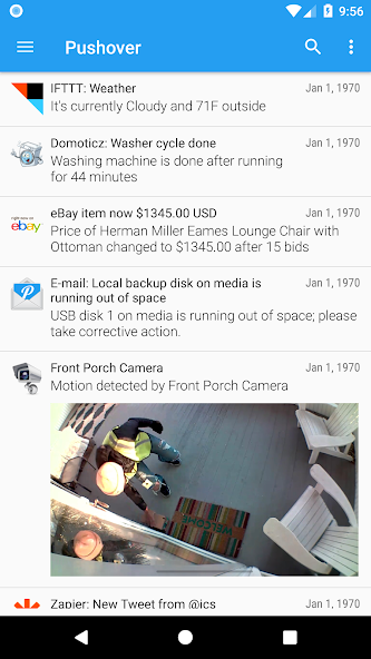 Pushover is a simple push notification service that integrates easily into web apps like IFTTT, network monitoring systems, shell scripts, servers, IoT devices, and anything else that needs to send alerts to your Android, iPhone, iPad, and Desktop devices. App includes a free fully-functional 30-day trial and receiving unlimited notifications on Android after that requires a one-time $4.99 in-app purchase.