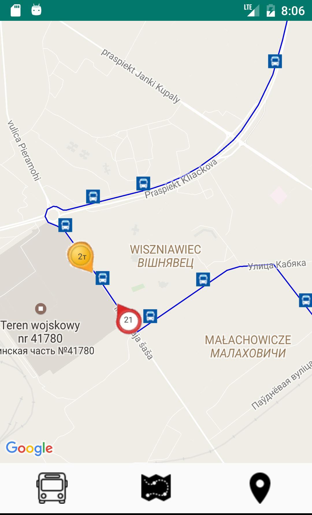 Grodno. schedule andlocation of vehicles in real time on the map.