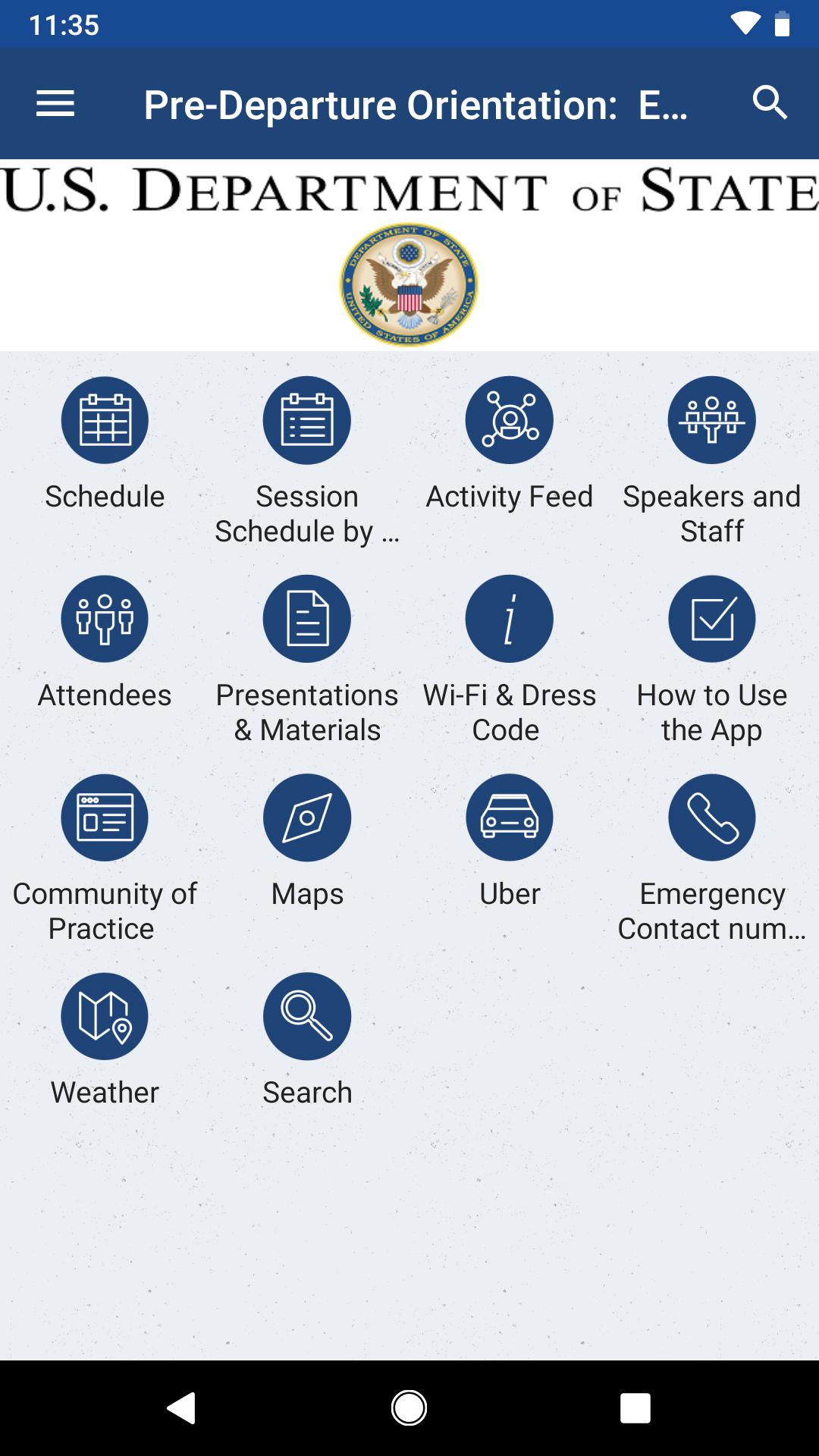 The English Language Fellow Pre-Departure Orientation (PDO) Event App allows you to connect with the English Language Fellows in your program cycle as well as U.S. Department of State program officers and Georgetown University English Language Programs staff. During this event, the app will provide you with your schedule, maps, important documents, and daily surveys. You will learn about American English resources, the Community of Practice, and exchange ideas for teaching and teacher training.