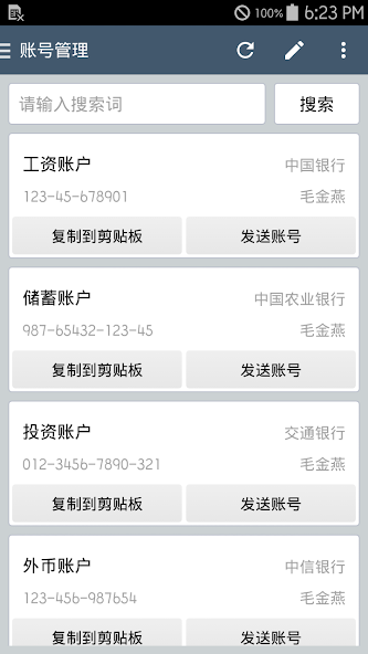 - If you enter the bank account number, you can copy it to the clipboard or send it to someone.