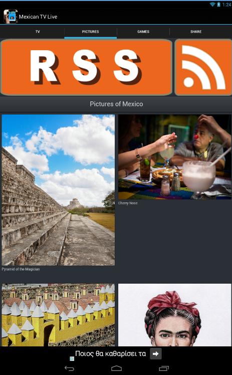 This is the entertainment page. There are 4 games that you could play when you do not want to watch Mexico TV channels live free. There is a Bird game, Memory game, Puzzle and Tic Tac Toe game. All of them are free to use. The Bird game requires you to guide a musical bird through log passages using taps on the screen. The Memory game employs 18 unique game cards that appear in pairs and that you can turn right side up when you tap on pairs, once all of them have been flipped. The Puzzle divides a picture into tiles and them mixes them up making it your task to form the original picture again. With the game of Tic Tac Toe you need to accomplish three crosses or naughts before the opponent does.