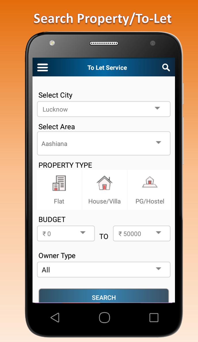 To Let Service App covers property in India, rental flats in India, flats for rent in India.