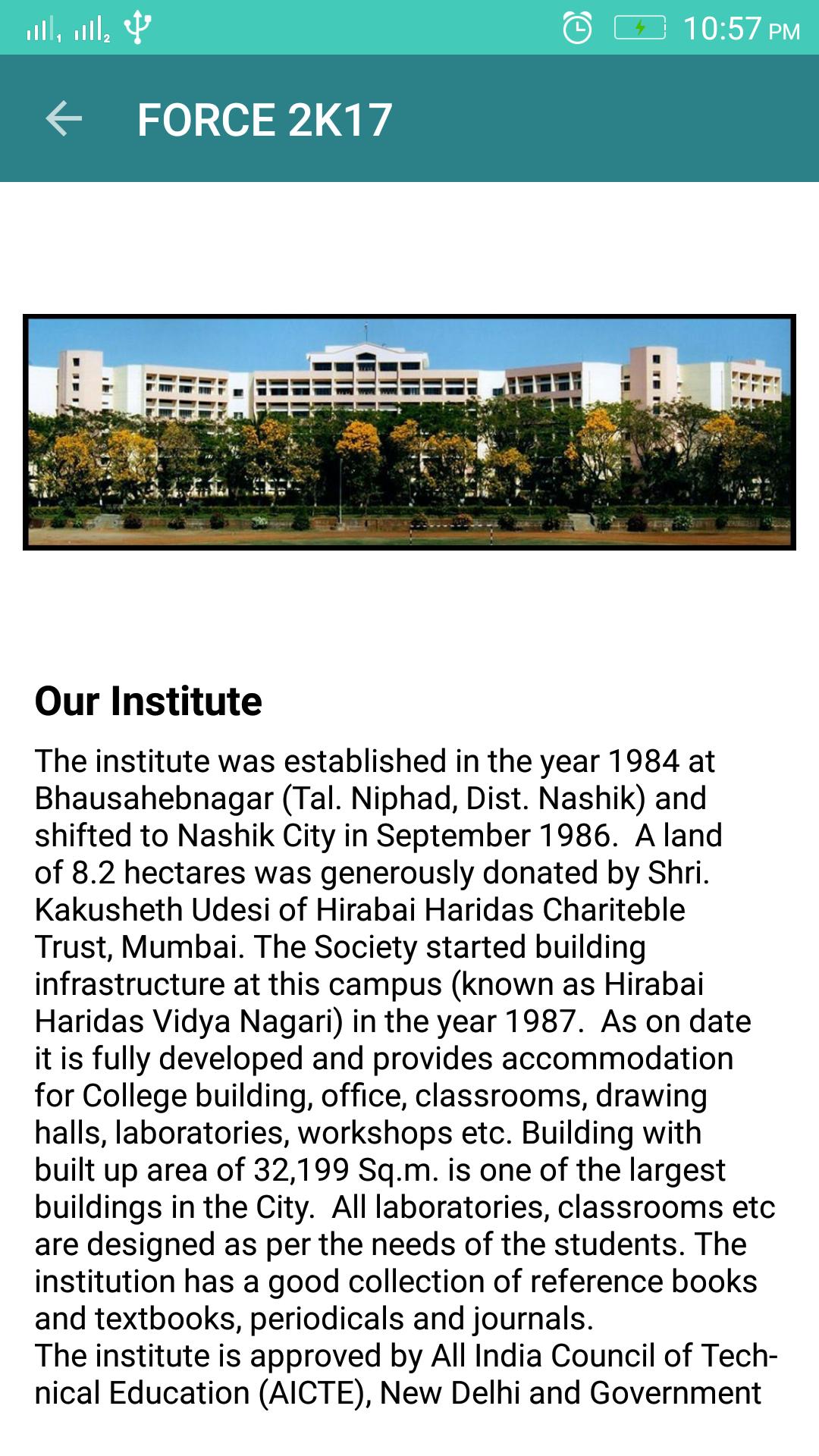 The department of Civil Engineering of K.K. Wagh Institute of Engineering Education and Research, Nasik organizes a two day National level technical event popularly known as F.O.R.C.E in the month of March. FORCE stands for Festival of Revolutionary Civil Engineers. One of most awaited events in the institute.