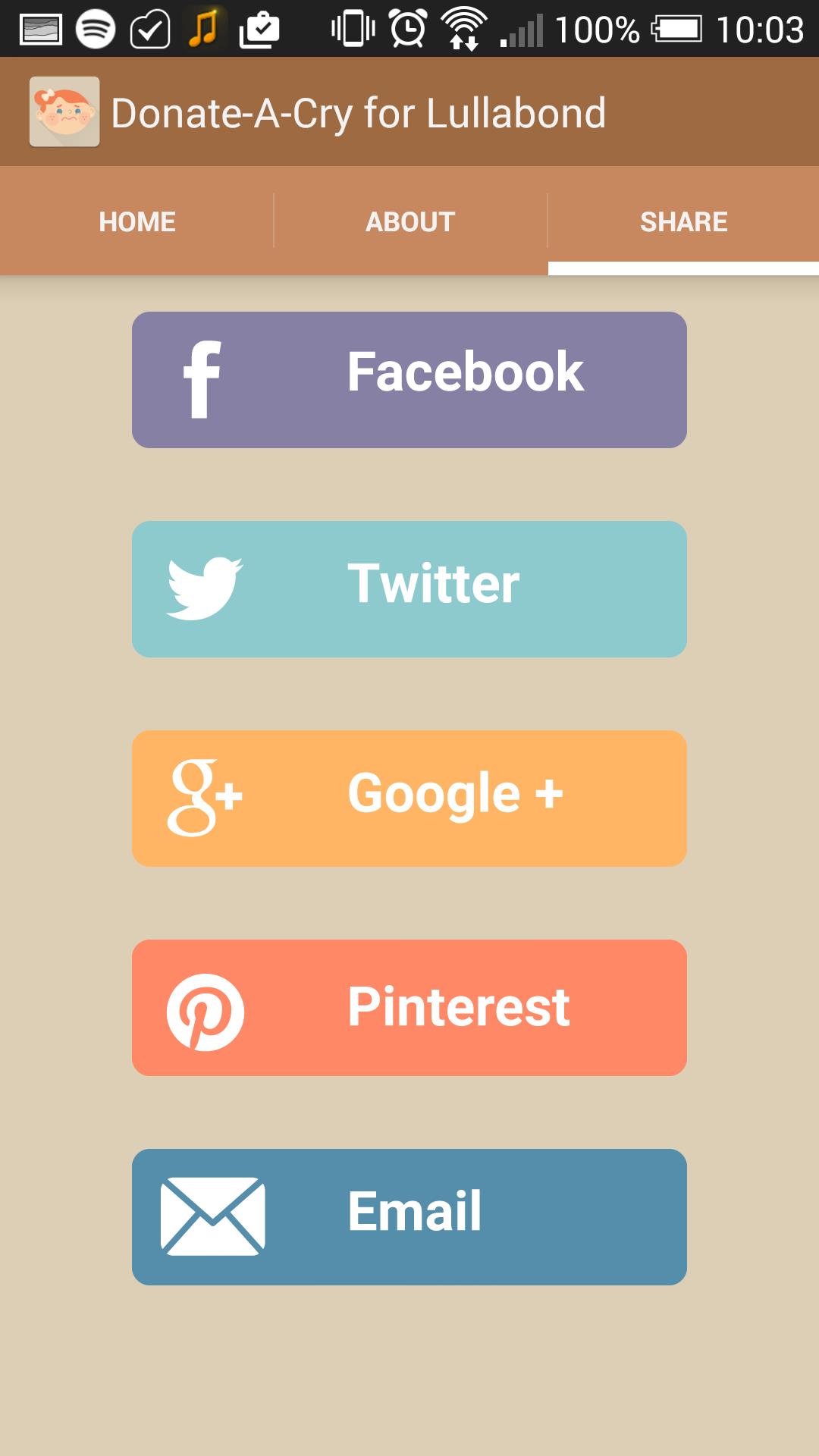 The app also allows you to spread the word about the project - sharing is highly appreciated! The more cry samples we receive the better our end product will become.