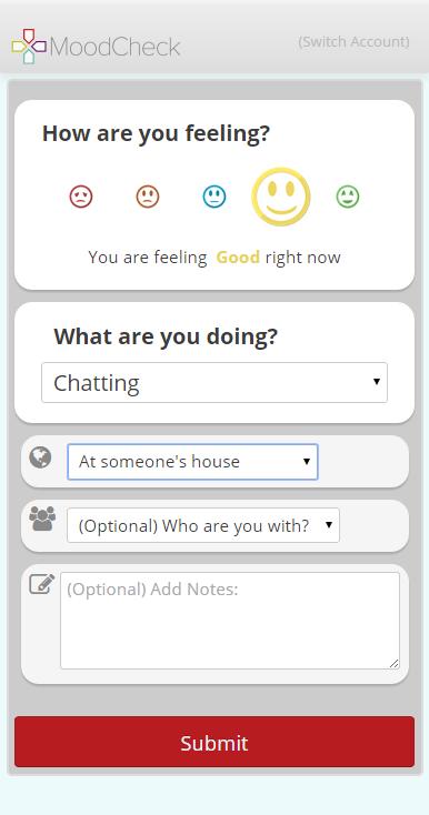 Download MoodCheck, your companion to WellTrack, and track your mood to find out what makes you happy. Determining what activities make you happy will help you avoid activities that decrease your mood. You must have a WellTrack account to use this app.