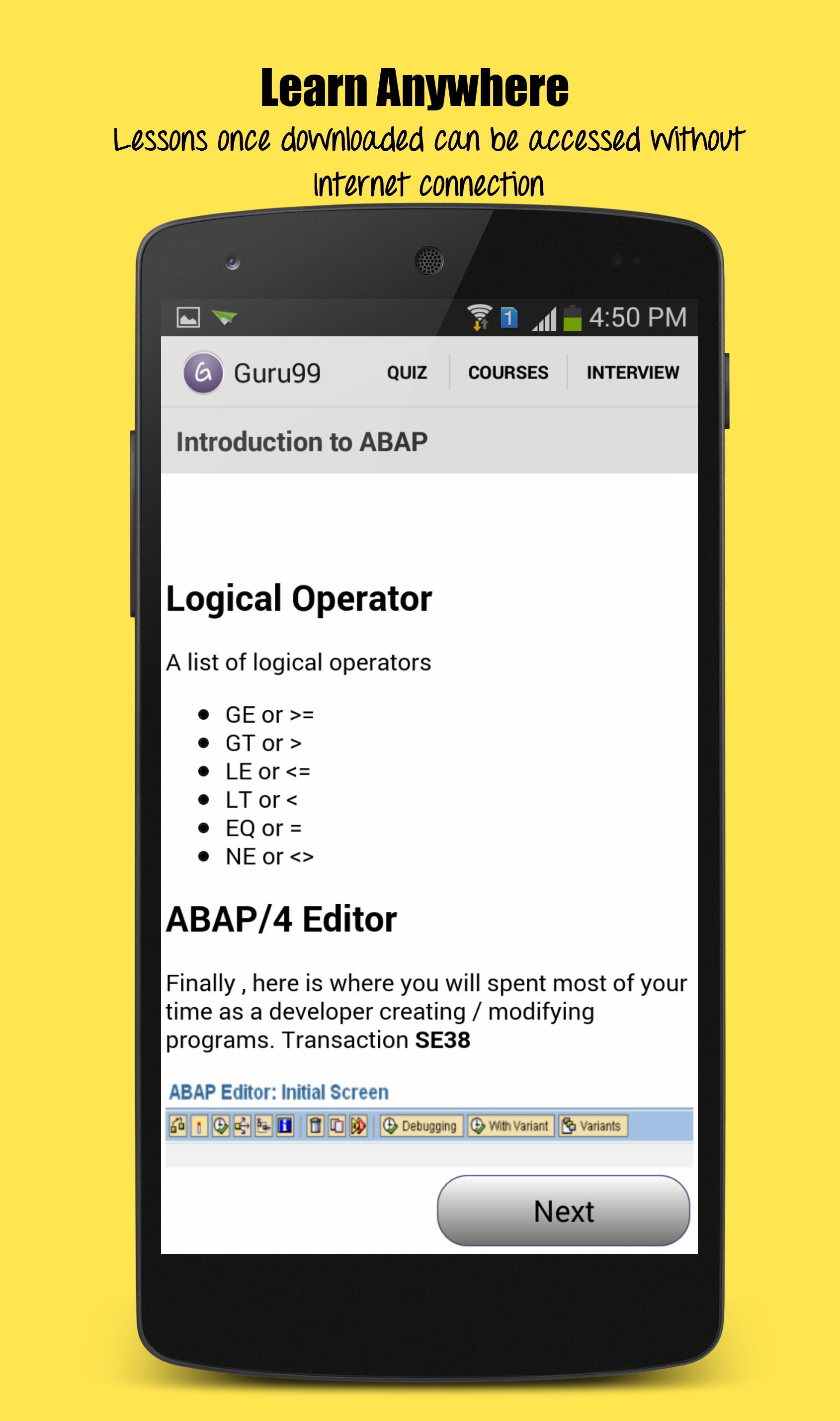 The free Guru99 Android app provides video and text based tutorials for different technical & non-technical topics. You can also take QUIZ to test your newly acquired knowledge.