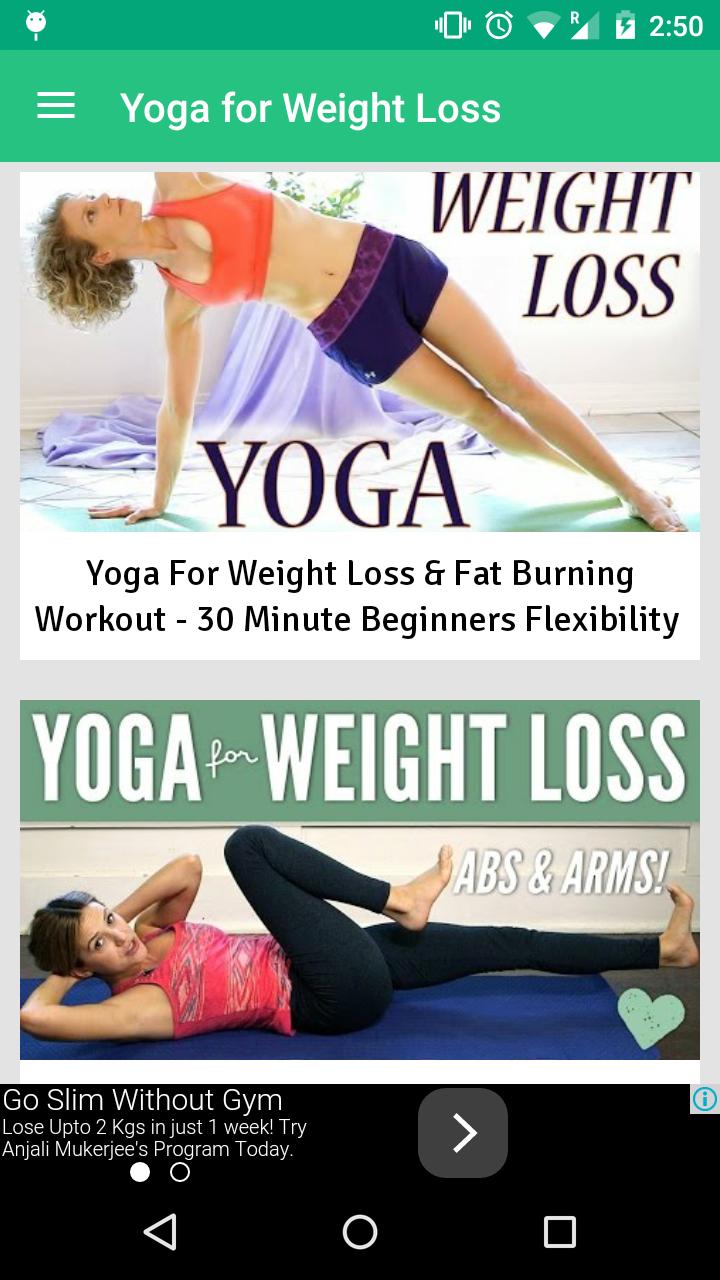 Yoga for Weight Loss is a free application to learn all the basic Yoga methods easily and start Yoga Practice for weight loss. All the yoga tutorials are presented as yoga videos from YouTube and helps you to gain a good understanding of all the essential Yoga for weight Loss.