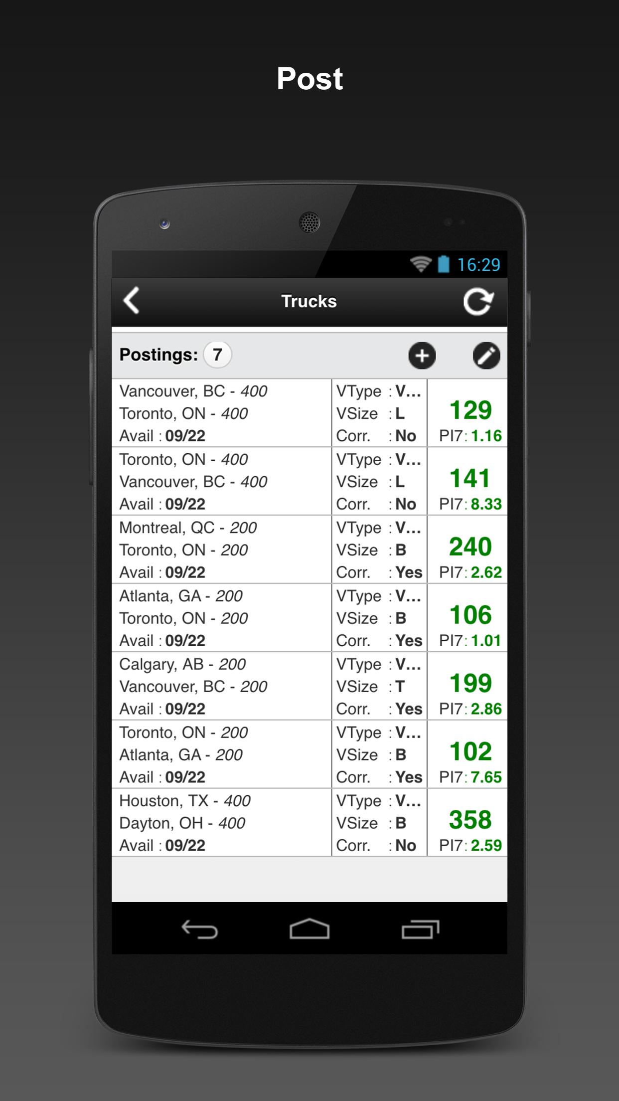 • TRUCK AND LOAD SEARCH: Quick and easy way to search postings by origin, destination, radius, equipment trucks, and vehicle size