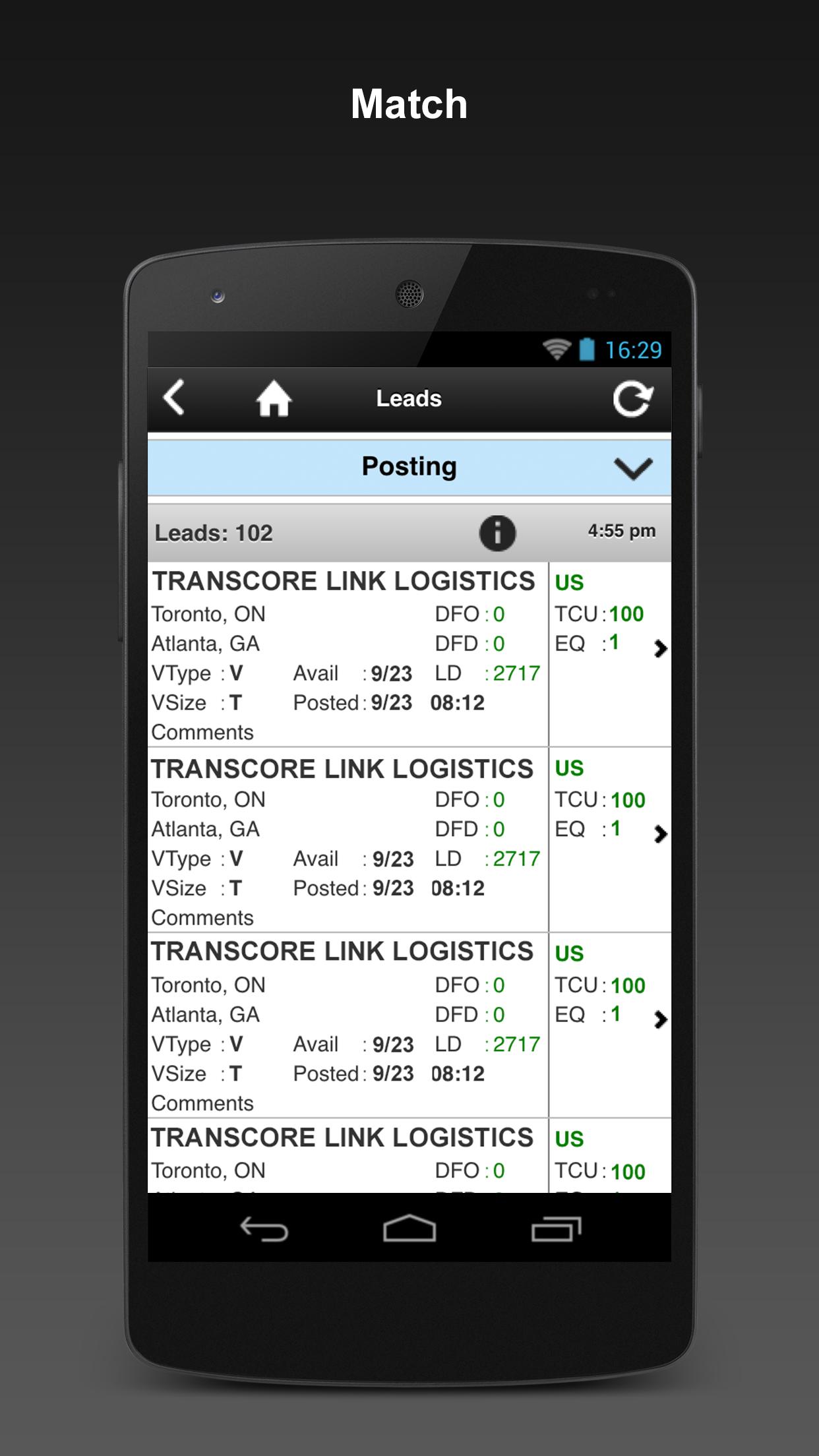 • NEW LEADS: Find new loads and stay on top of incoming leads every minute