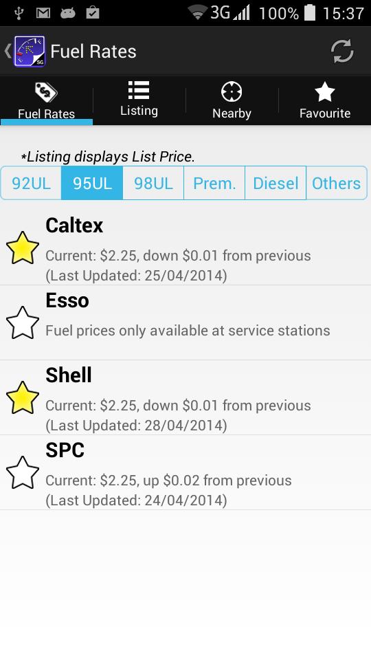 From "92 Unleaded" to "Premium" grade petrol, you can view the various petrol prices of Caltex, Shell and SPC at a glance.