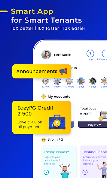 Smart PG/Hostel App for Tenant check & pay dues,check food menu&raise complaints