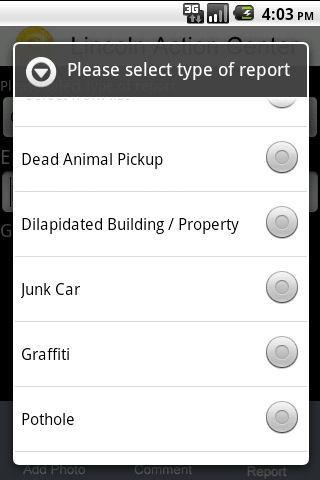The Lincoln Action Center can be used to report issues within the city limits.