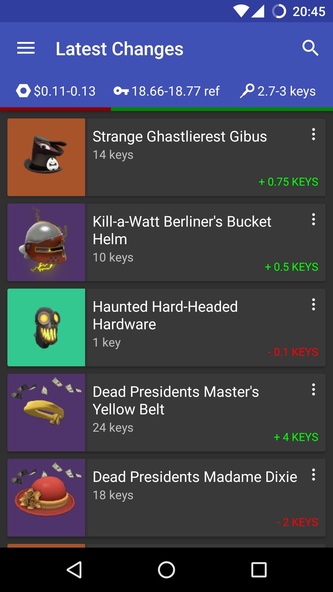 - View the latest price changes submitted by the community of backpack.tf.