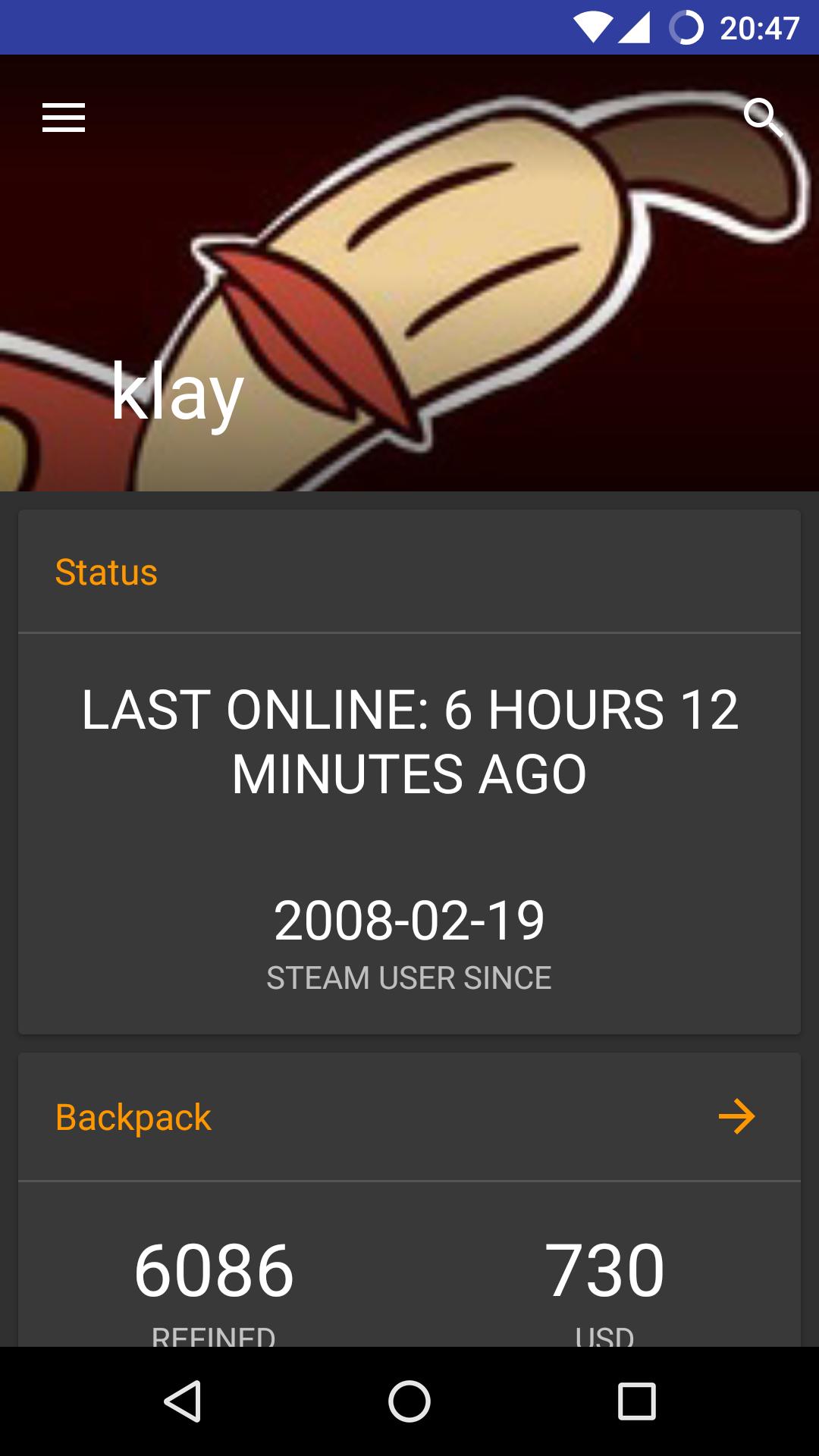 - Search for other users by their steamID or vanity name to get some info about them.