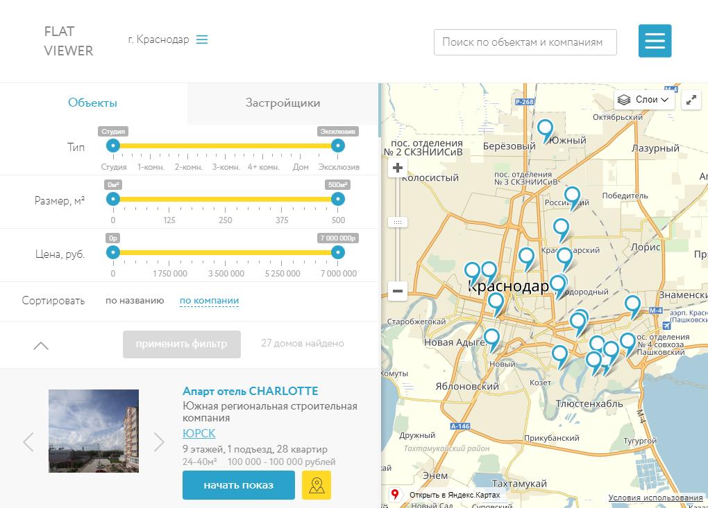 FLAT VIEWER is a service for those who sell and buy real estate. You see your future housing without coming, you can take a walk in the future garden, go to the parking lot, go to the playground and walk throughout the territory of the residential complex.