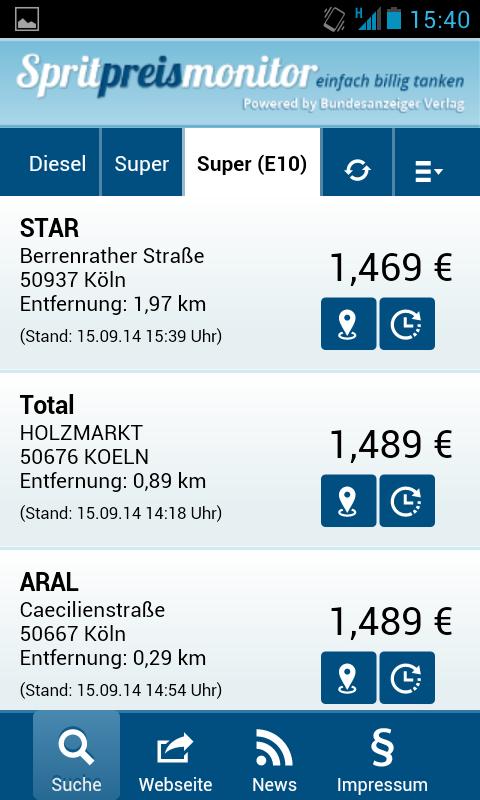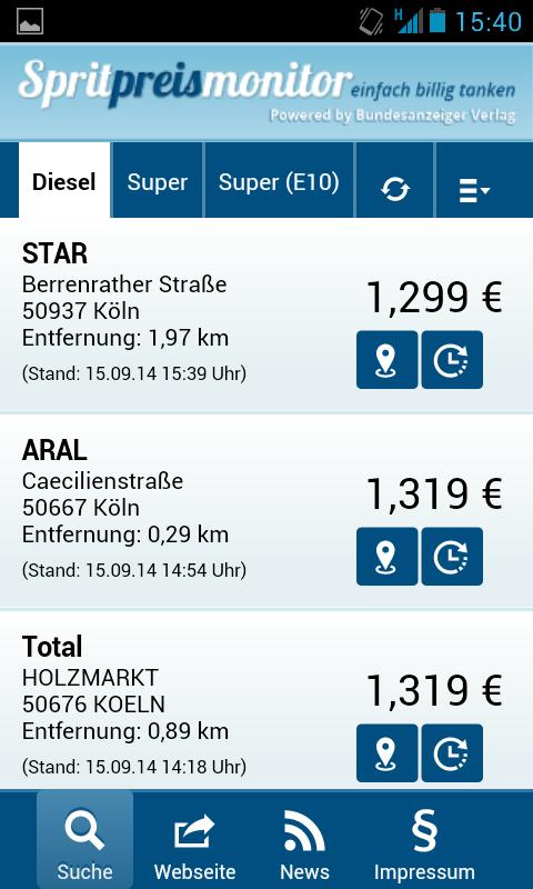 Real -time prices: With the real -time data of the market transparency, the price changes of over 14,000 petrol stations find. You always get the cheapest fuel prices, regardless of whether diesel, great or Supere10.