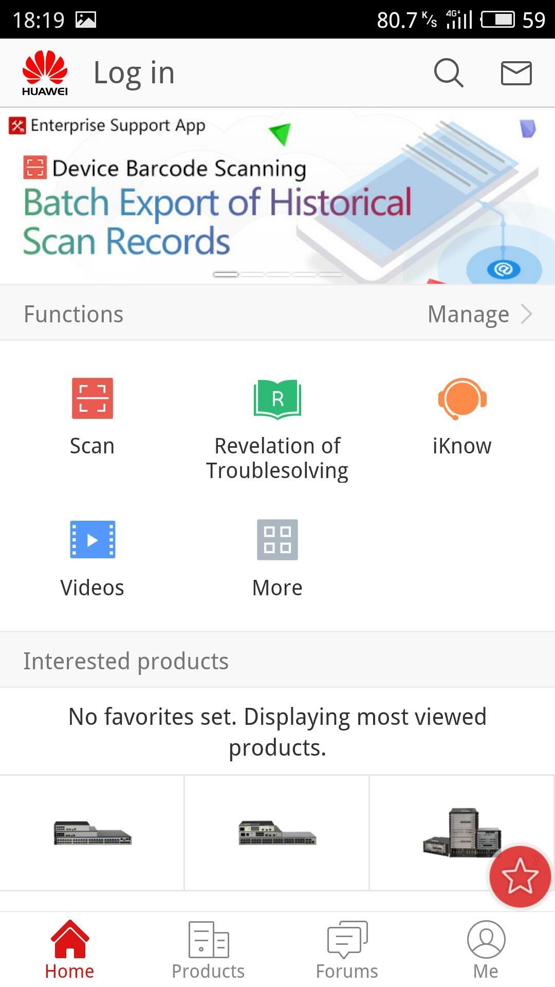 The Huawei HiKnow App enables on-the-go and convenient access to services and support for Huawei Enterprise customers. You can quickly find the desired Huawei product’s information and the local Huawei customer support center contact information. The App helps you easily query commands, alarms, spare parts, and other information.