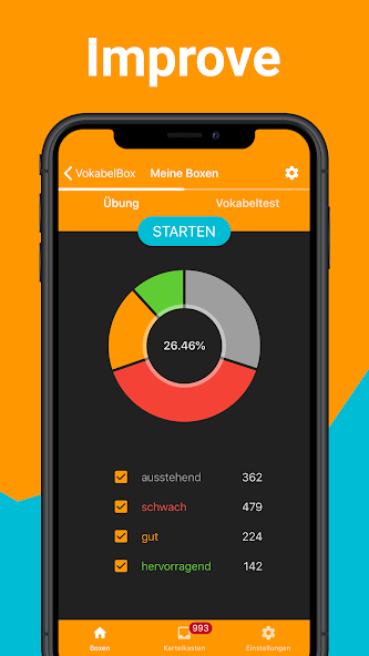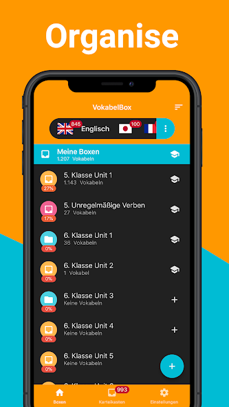 The VokabelBox is a vocabulary trainer with which you can learn your vocabulary in a structured and lasting way.