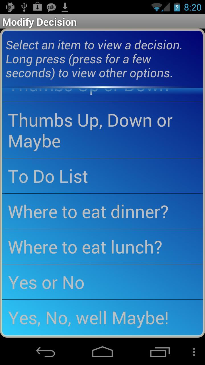 We all have to make lots of decisions everyday. This application aims to add fun and excitement into your daily decision making.