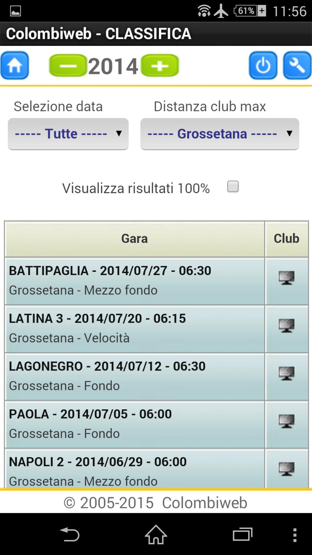 The first online application that allows national sharing of all activities of interest to Colomboofili: web management of competitions, rankings, championships, dovecos, genealogical trees. Race data acquisition from owner systems such as benzing, tipes, cunikon and manual mode.