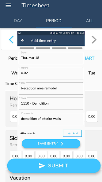 • Timesheet Management – Capture and track your employees’ time against tasks, projects and clients. Getting notifications and alerts, entering comments and requesting time off are just a few of the many capabilities this app has to offer.