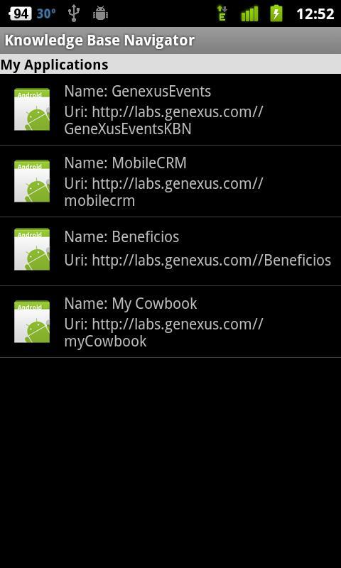 Users create their KB with GeneXus and they can access its application data using Android Devices.