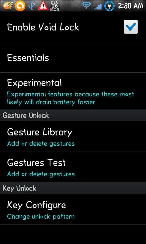 I should probably address the issues that some users are having with uninstalling. Void Lock can not be uninstalled after you have set it as a Device Admin. To uninstall, go to Settings, then find Security, find Device Adminstrator, and disable it.