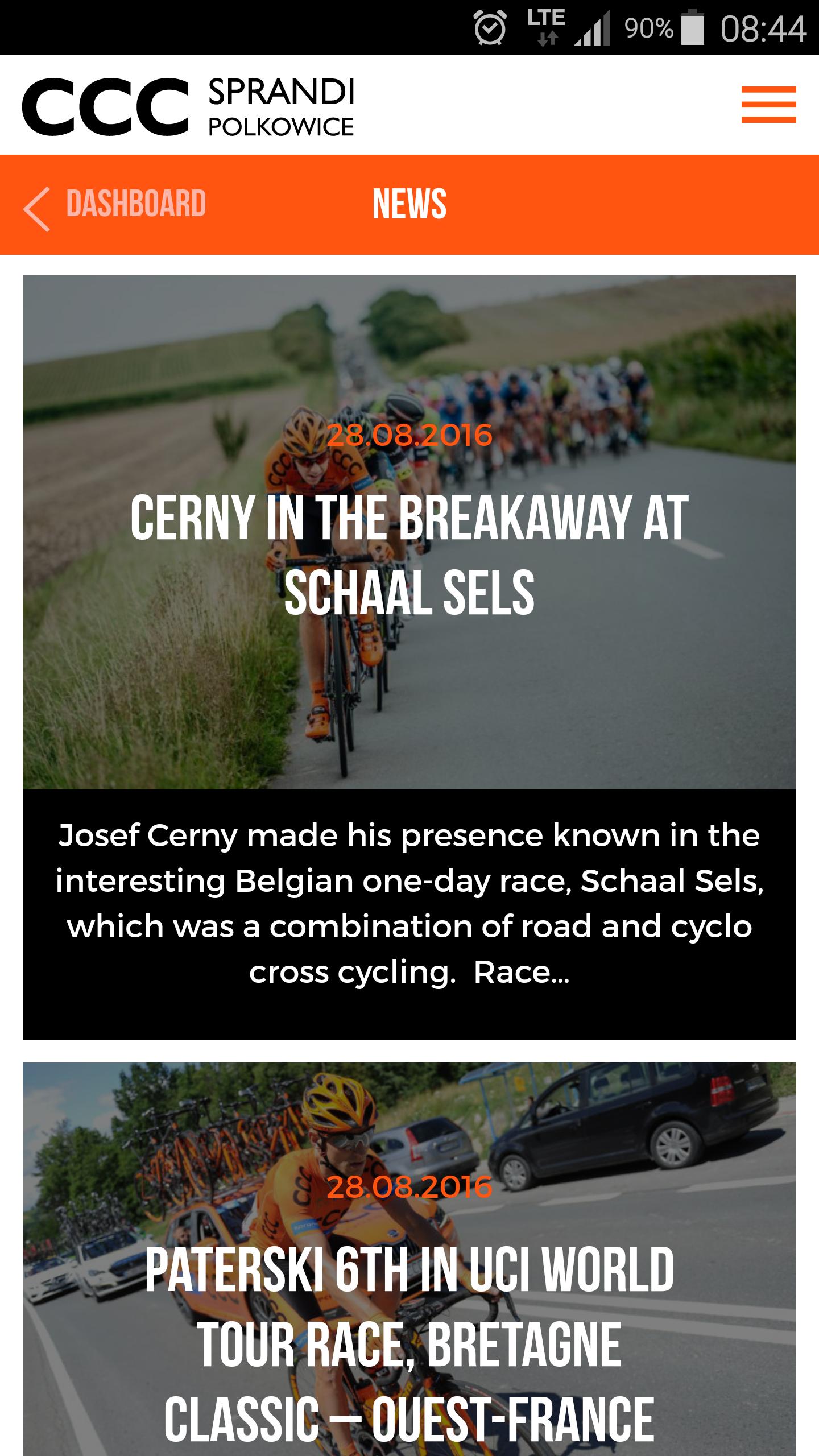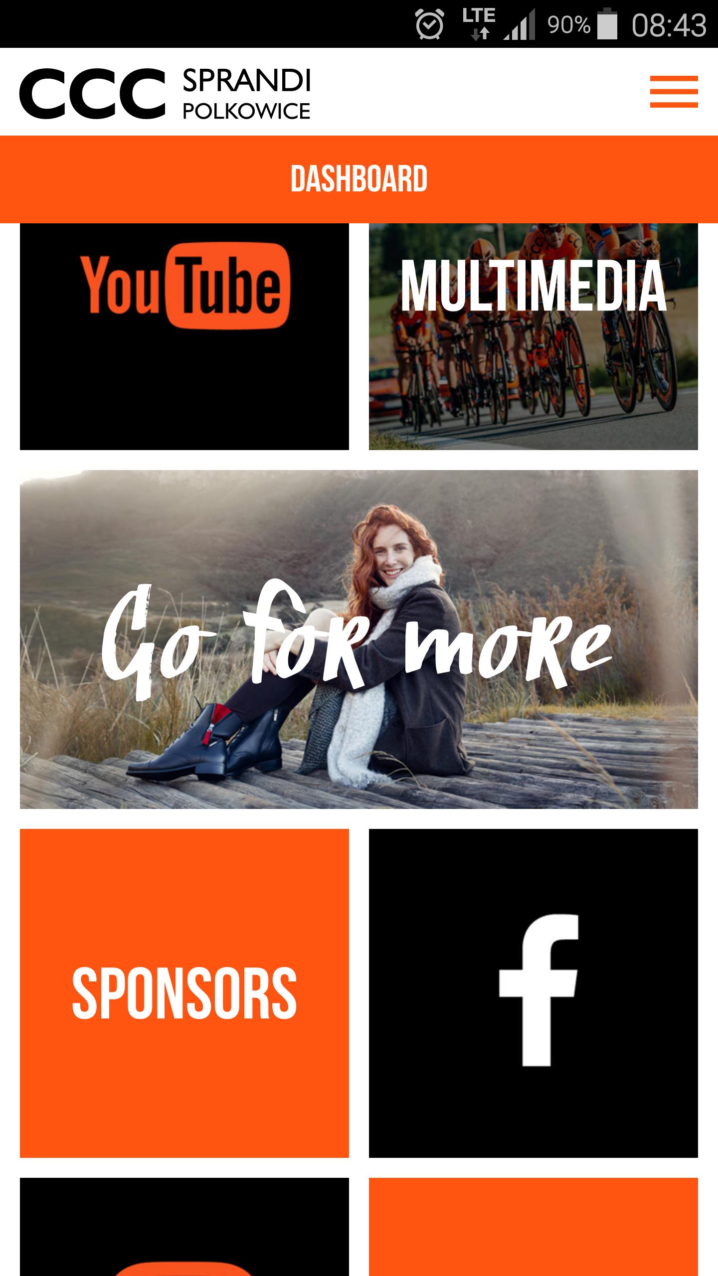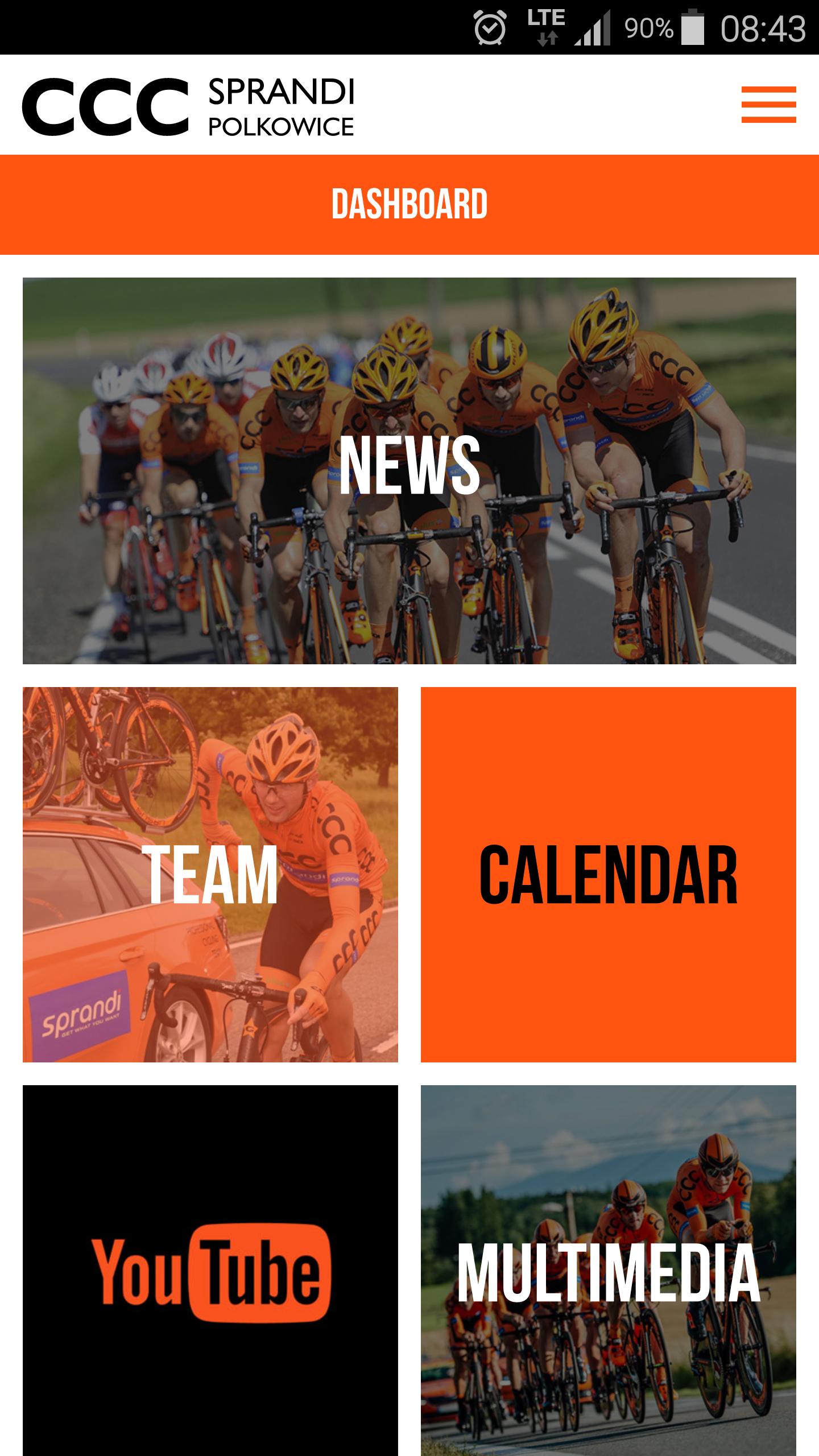 CCC Sprandi Polkowice Pro Cycling Team mobile app lets You read the latest news and info about current races, the Team riders & entire Crew. You can review official team's race calendar and the entire team's achievements and competing history for each CCC Sprandi Polkowice rider. You can learn more about our team's riders and get to know with members of the CCC Sprandi Polkowice Pro Team. Stay close to us via social media streams that are available via main menu and the Dashboard. Our app is currently available in English and Polish.