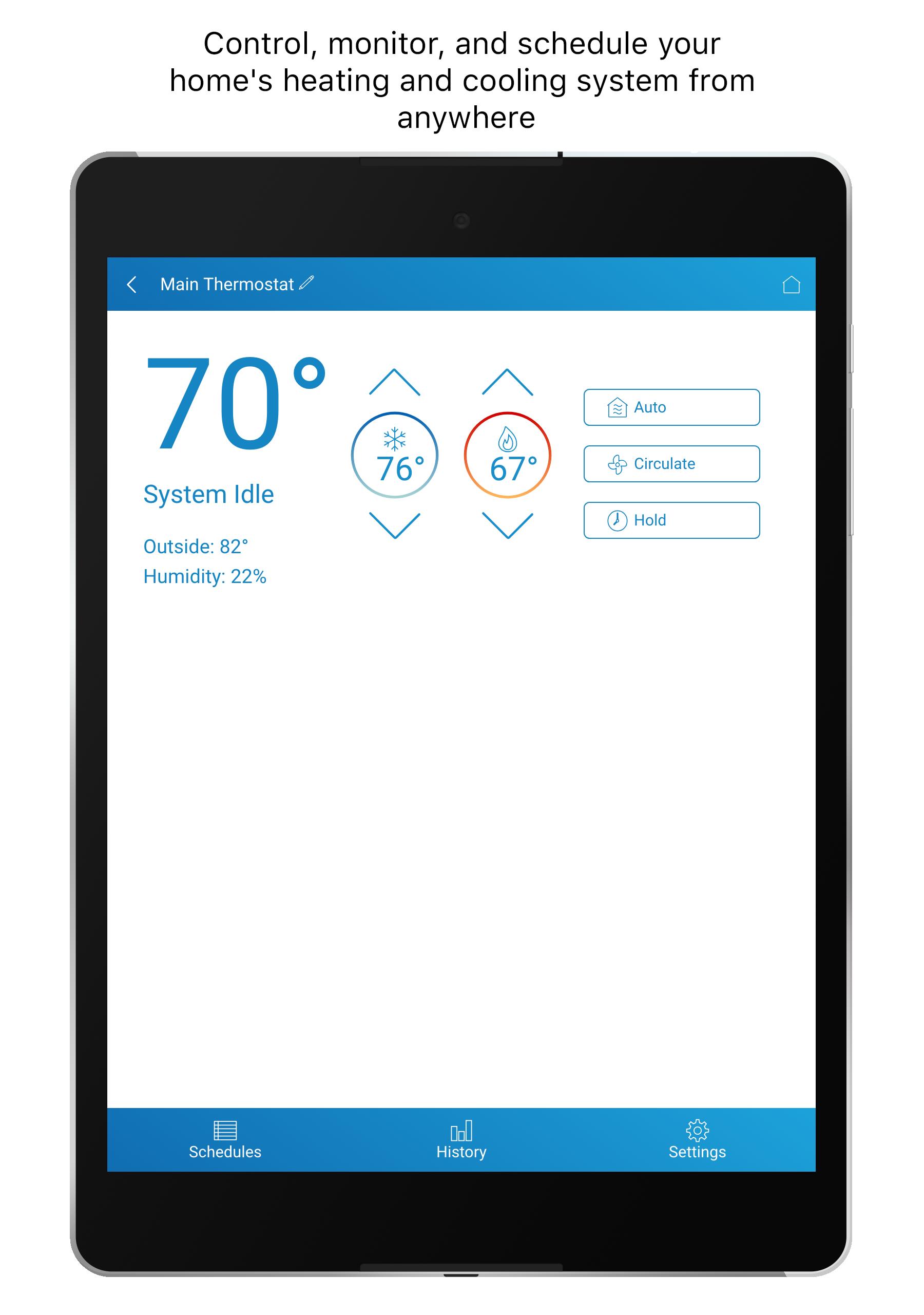 - Control, monitor and schedule your home's heating and cooling system from anywhere