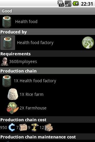 - the supplies details, with all the production chains