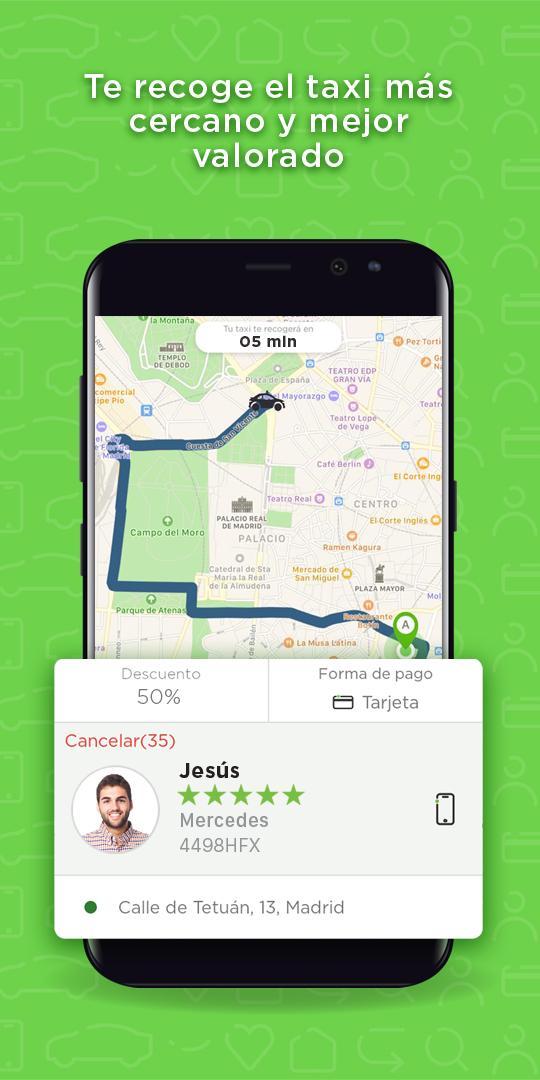 In addition, you can know your taxi driver before: photo, name, rating, telephone number, approximate waiting time, car model, license plate and reputation.