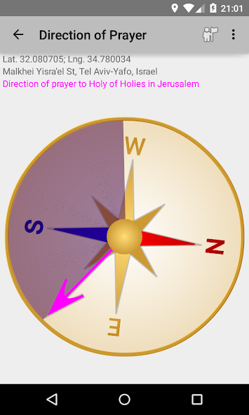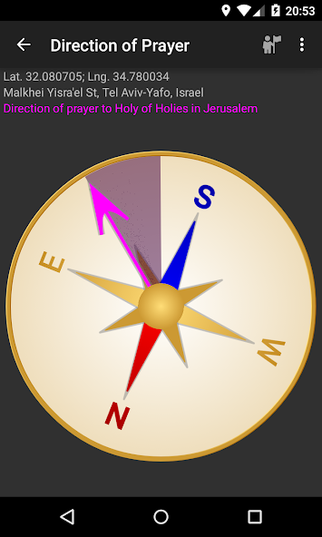 Compass that indicates the direction for your prayers to the Holy of Holies in Jerusalem, Israel.
