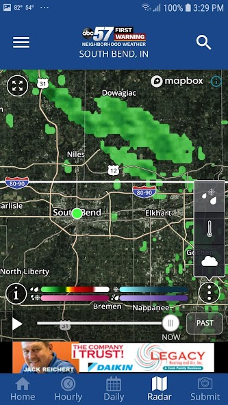 The new ABC 57 First Warning Neighborhood Weather app features: