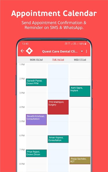 Manage all your appointments for multiple clinics and multiple doctors using a simple calendar. Patients are notified of the appointment on SMS and email. Patients are also sent appointment reminders on the day of appointment. Every morning doctors get a SMS and email notification with a list of appointments for the day.
