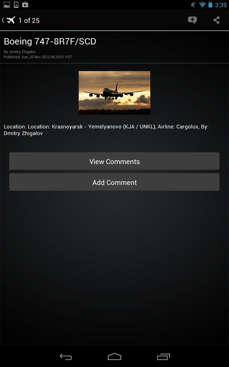 The new Airliners.net application also includes the ability to email your favourite photo to a friend or share on Facebook and Twitter.