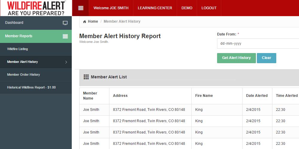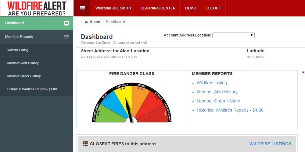 Included with a basic membership; the ability to enter one permanent property location. The website will query the USGS data bases for active wildfires within a 100 mile radius of the member’s property location. The member can visit the site and see information on these wildfires along with maps showing the wildfires location relative to the members identified property location.