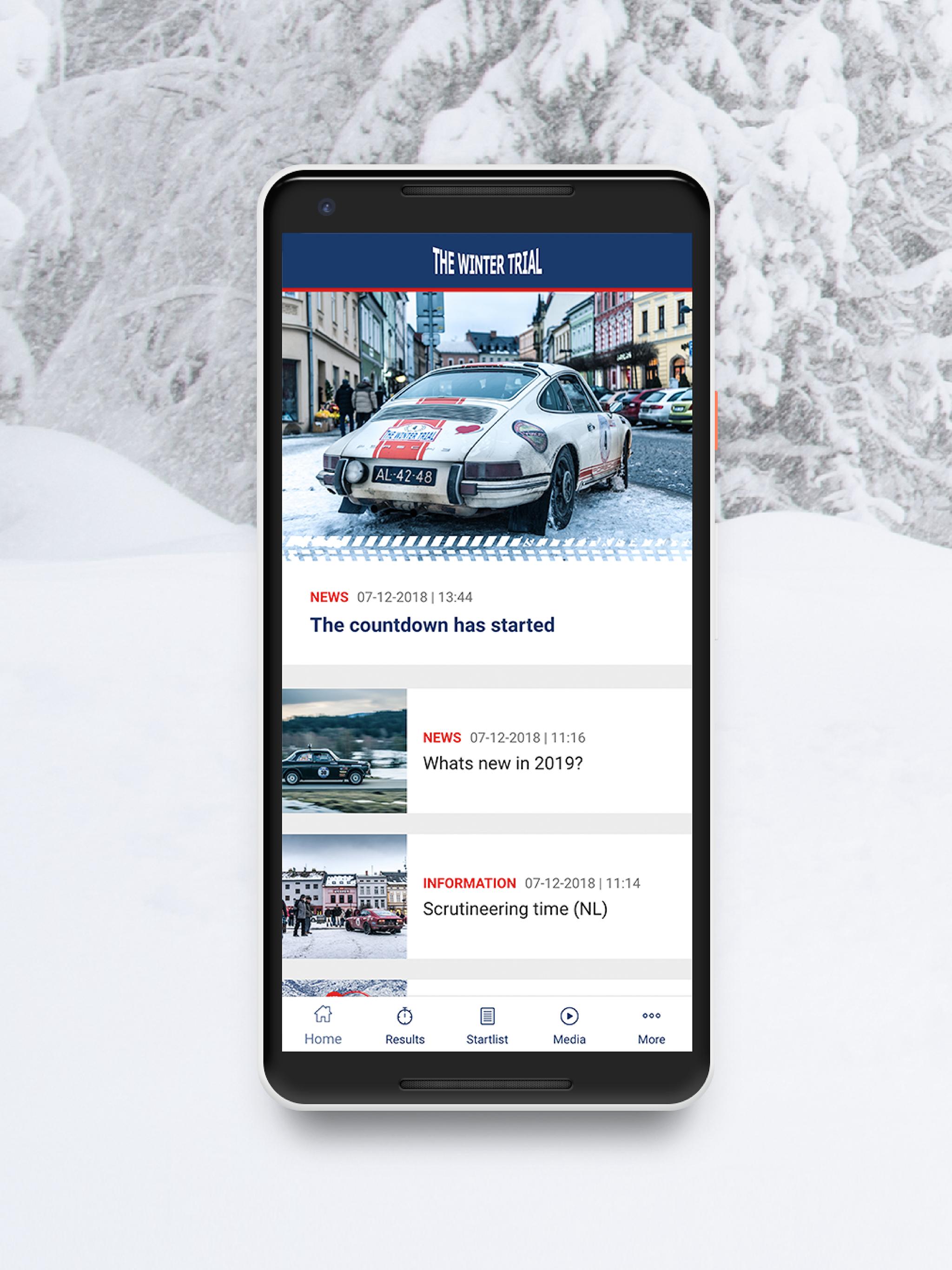 The brand new Wintertrial app is not only a múst-have for all our participants, but also for enthusiasts who can use the app to experience the rally up close. In this app you will find inside information about the teams, the dates / times / locations, the participants' regulations, starting lists, tips & tricks and background information regarding the organization, partners and previous editions.