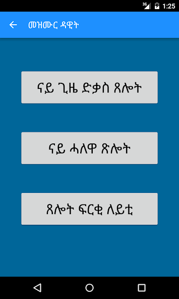 هذا تطبيق مجاني يحتوي على Maryam و Mezmure Dawit في Tigrigna.