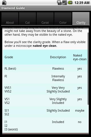 Diamond Guide هو مرجع مفيد وسهل الاستخدام للمتسوقين للمجوهرات. خذها معك واحصل على أفضل نصائح شراء الماس في أطراف إصبعك.