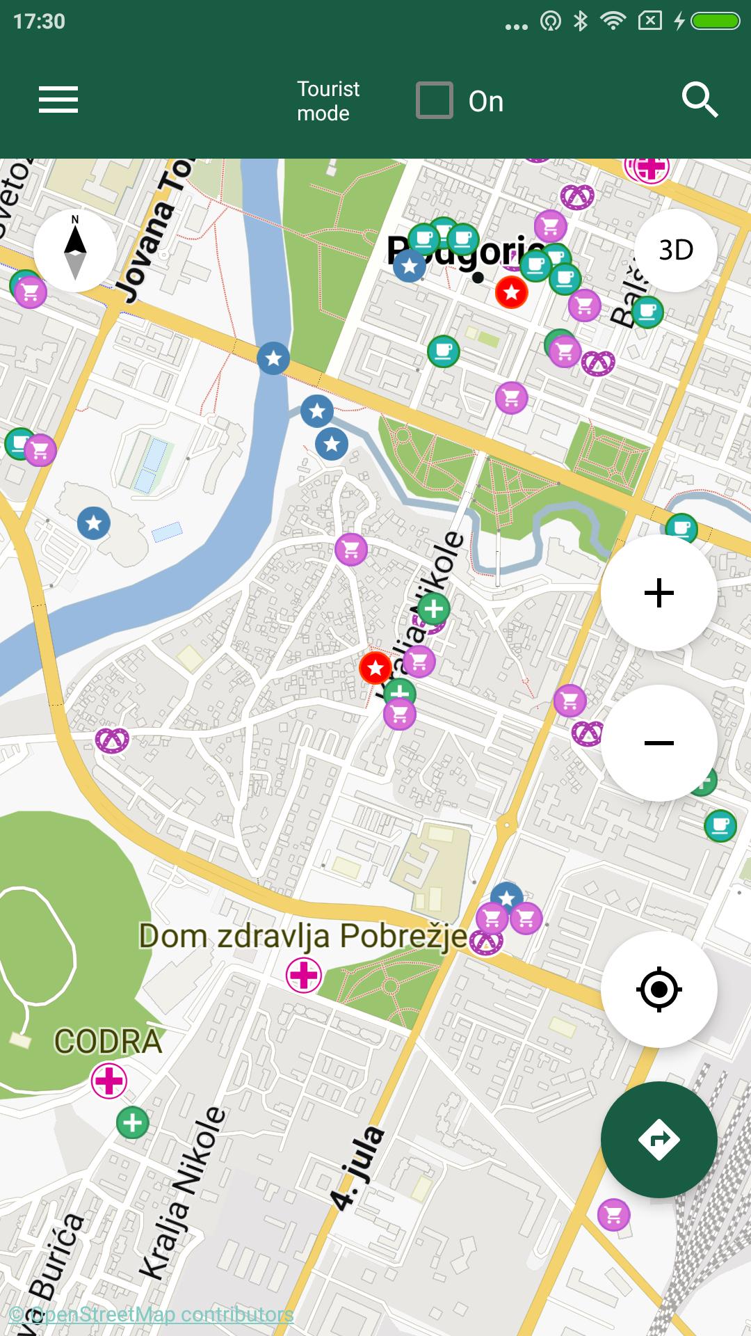 خريطة خارج الخط Podgorica (الجبل الأسود) - تطبيق سفر مجاني. سوف: قم بتخطيط المسار ، وإظهار مناطق الجذب السياحي مع الصور والأوصاف ، والعثور على أقرب مقهى أو سوبر ماركت. اتصال الإنترنت غير مطلوب.