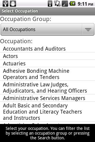 تستخدم Labor Wage Statistics الإحصاءات التي تقدمها وزارة العمل للمساعدة في الخيارات الوظيفية المستقبلية.