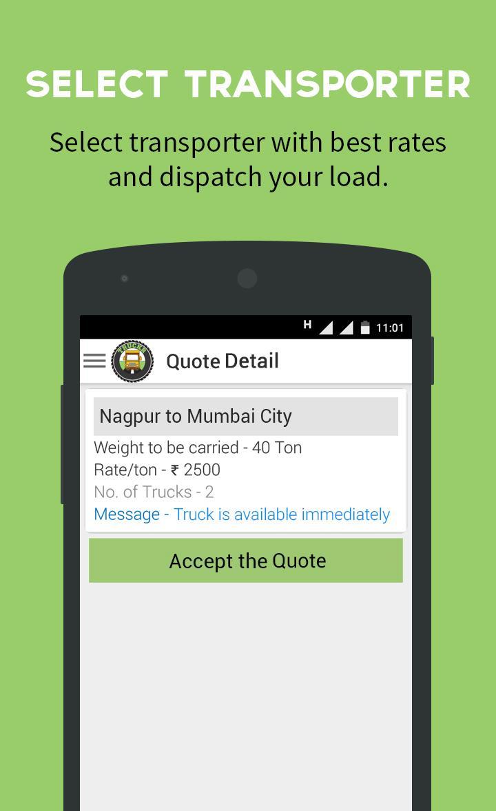 TruckR هي منصة يقوم فيها الشاحنين بنشر شحناتهم ويقدم الناقلات عروض أسعار للشحن. إنه تطبيق سهل الاستخدام قائم على الهاتف المحمول. باختصار ، يعد تبادل النقل لجلب الراحة والكفاءة إلى صناعة النقل بأكملها.