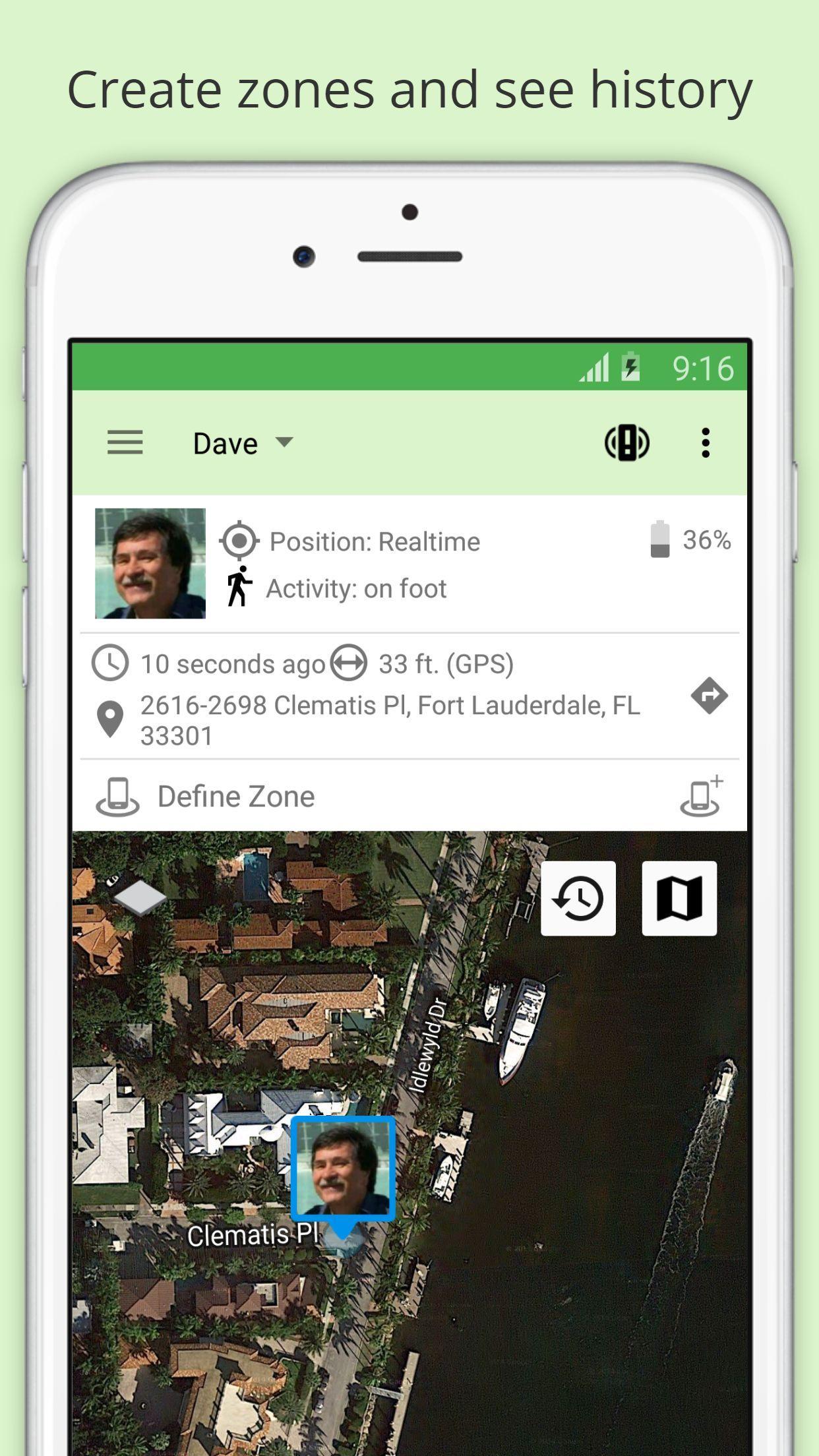 ► التاريخ: تمكنك ميزة التاريخ من رؤية مواقع وحركات GPS الخاصة بأحبائك. شراء السجل كاشتراك لمدة شهر واحد - فقط 0.99 دولار / شهر!