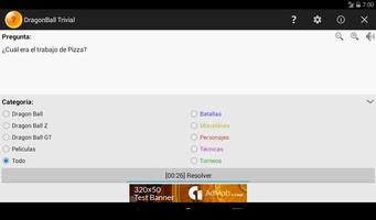 * Trivial de DragonBall ليست لعبة متعددة اللاعبين على الإنترنت. يضع Trivial de DragonBall أكثر من 5000 سؤال حول عالم Dragonball. يمكنك استخدامه لنفسك أو كأداة للعبة اللوحة التي ستجدها في http://dbtrivial.shalafisoft.com