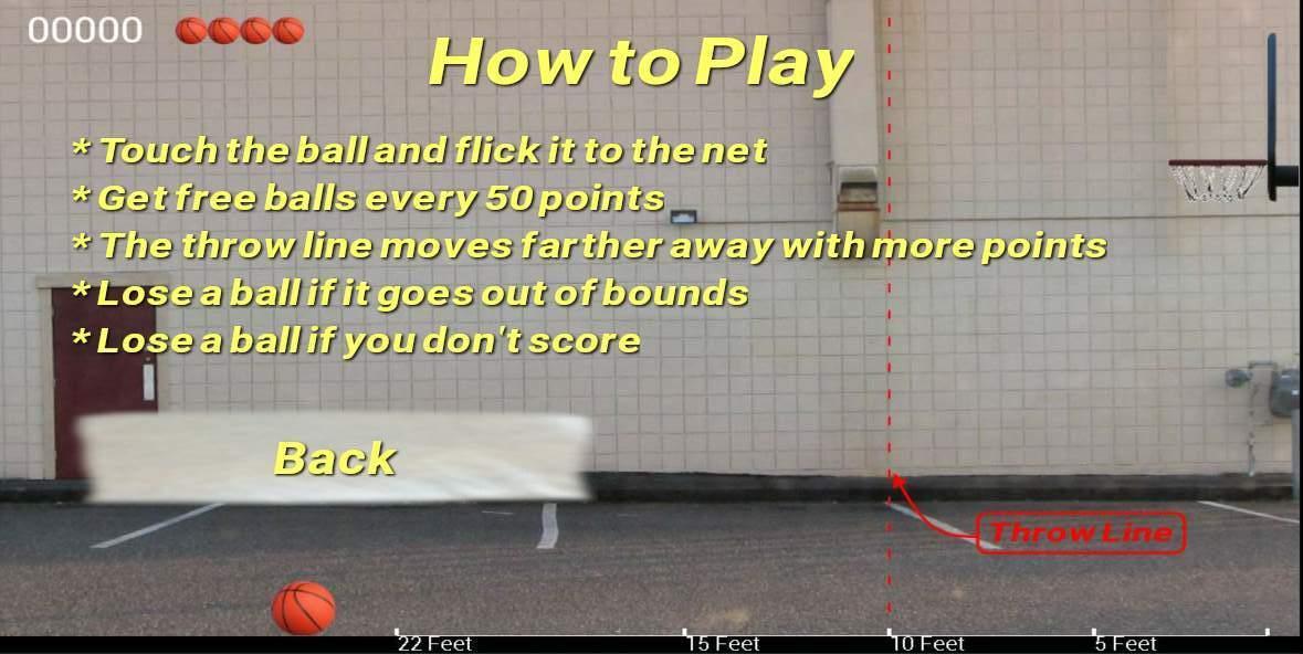 الاستيلاء على الكرة عن طريق لمسها. نقر الكرة على اللوحة الخلفية وفي السلة. احصل على 3 نقاط إذا رميت من 22 قدم!